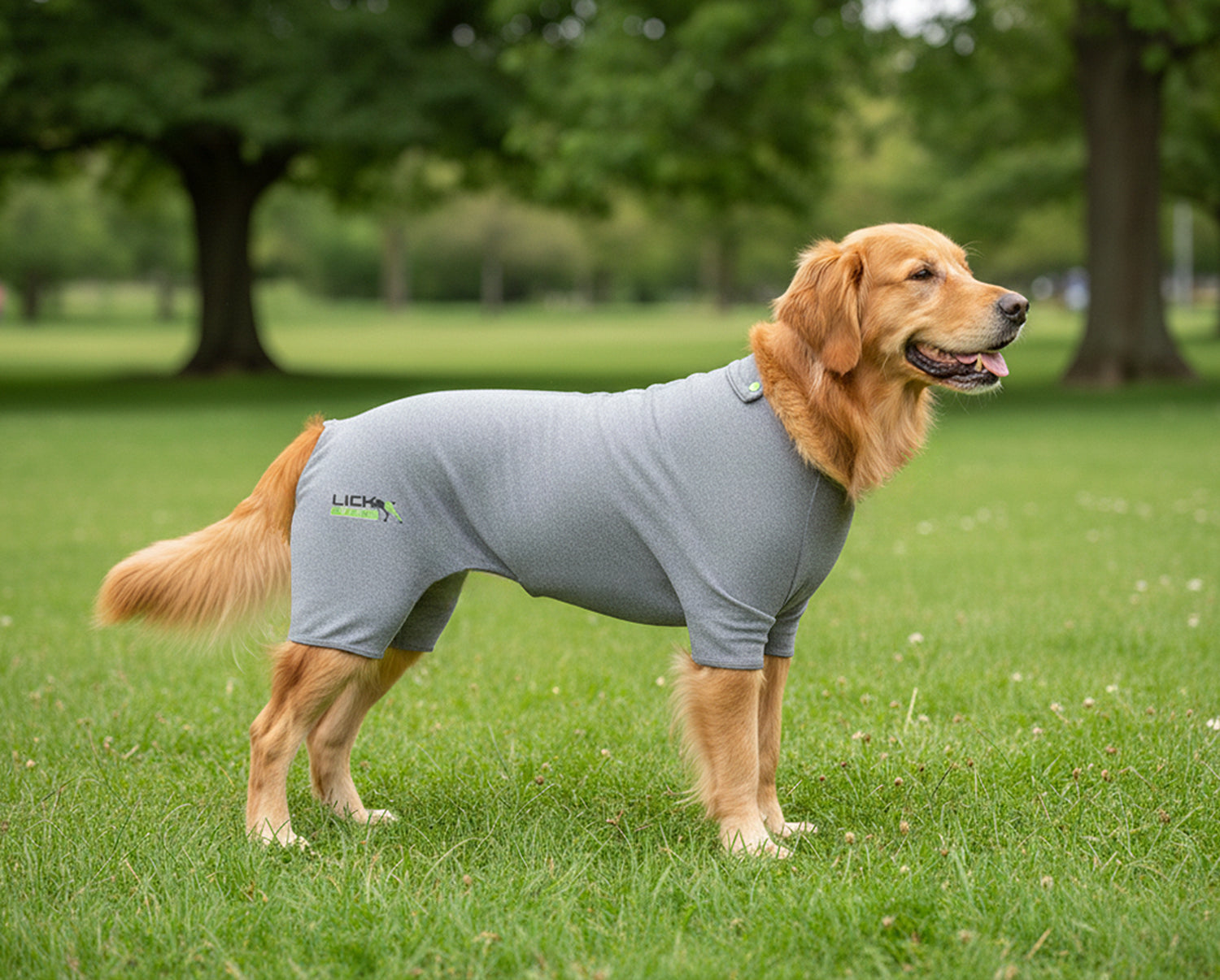 Our vet recommended the Lick Sleeve after our golden retriever had a splenectomy to remove a 7.5-pound tumor, leaving her with 55 staples. The staples came out after 17 days, with just a small spot still healing, so we still use the sleeve when we can’t supervise her. It’s been a godsend—easy to put on and take off, soft yet durable, quick-drying, and it’s held up beautifully. She much prefers it to a cone. Shipping was fast, and we HIGHLY recommend it. Thank you, Lick Sleeve!